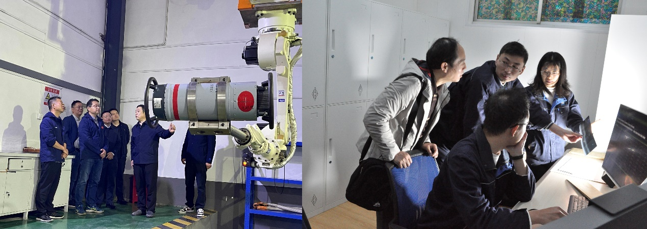 張旭海一行先后到化機分公司劉毅勇技能大師創(chuàng)新工作室、無損檢測工段和晨光藝術(shù)工程生產(chǎn)制造車間進行了實地調(diào)研,并與劉毅勇技能大師創(chuàng)新工作室?guī)ь^人及團隊成員進行了深入交流,詳細了解工作室的制度建設(shè)、日常運行、示范引領(lǐng)作用發(fā)揮、人才培養(yǎng)、創(chuàng)新成果等情況,認真聽取了化機分公司近期研發(fā)的“AEROSUN EagleEye”智能識別軟件系統(tǒng)的開發(fā)進展。