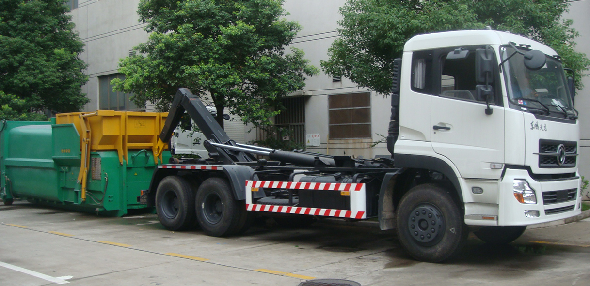 CGJ5250ZXXE5型車廂可卸式垃圾車是收集居民小區(qū)、街道等處的城市生活垃圾并將其送往垃圾中轉(zhuǎn)站或?qū)⒗修D(zhuǎn)站箱體運(yùn)至垃圾處理場的專用車輛。